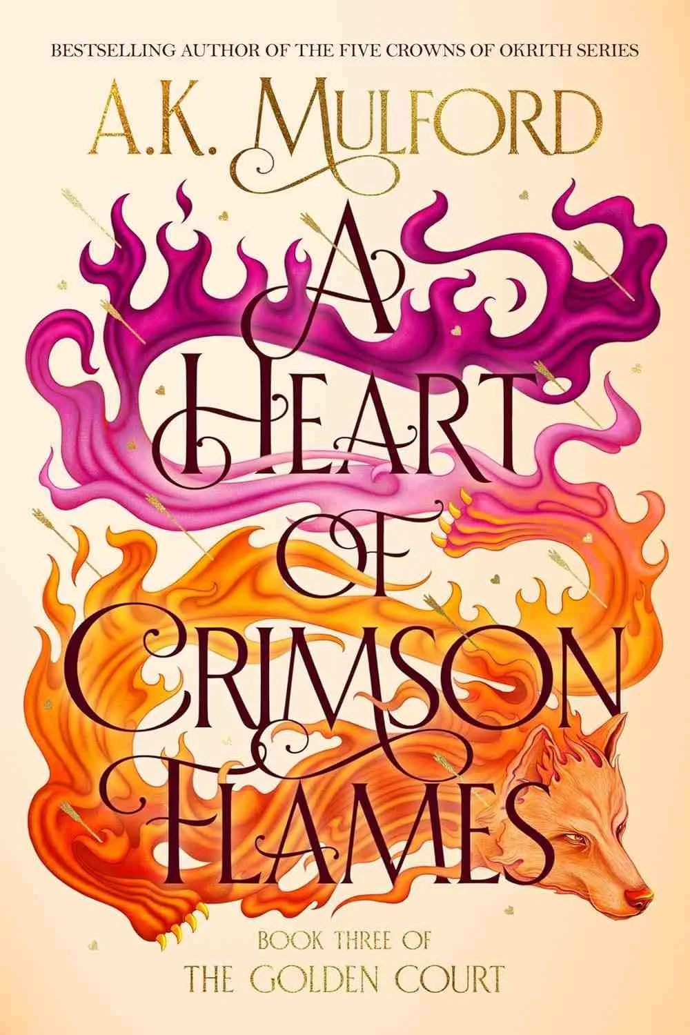 In A Heart of Crimson Flames, A.K. Mulford delivers a breathtaking finale to the Golden Court Trilogy—a tale of love, loyalty, and power tested in the fires of war. As the fragile peace between humans and Wolves shatters, three fierce members of the Golden Court must fight not only for their world, but for the people—and loves—they’ve lost.