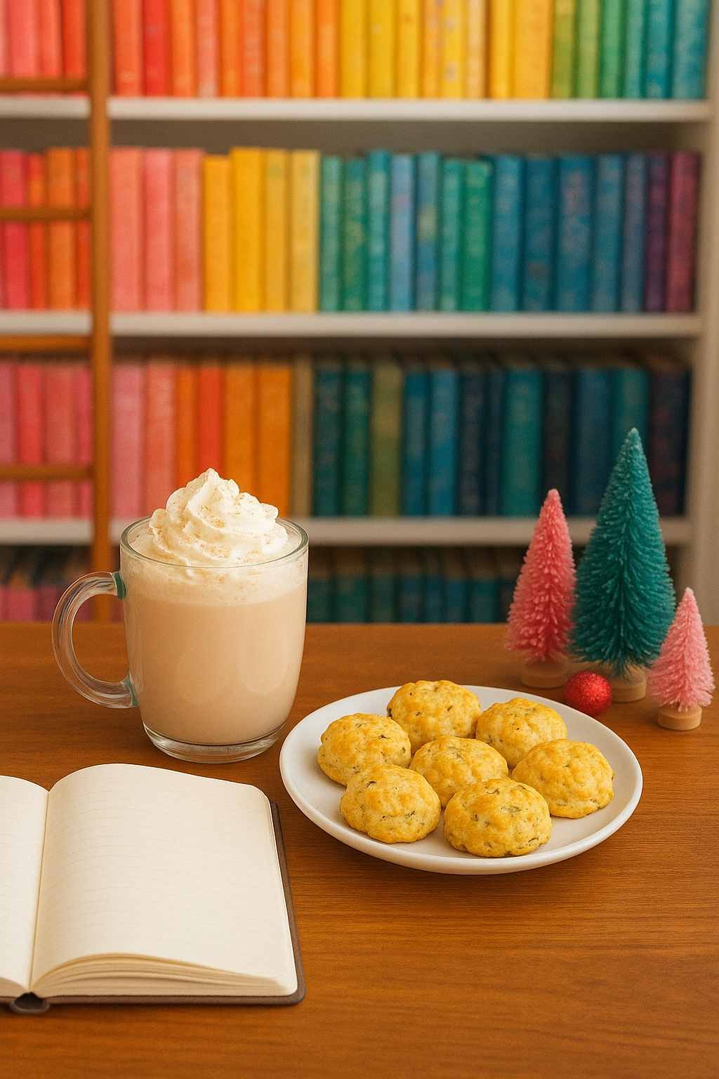 Perfect with a maple steamer or spiced cider. Cheddar & herb mini scones are the savory twist your cozy reading session didn’t know it needed. Warm, buttery, and studded with sharp cheddar and fragrant herbs, they bring that comforting “fresh-from-the-oven” vibe without overwhelming your mug of tea or cider. Their bite-size shape makes them easy to snack on one-handed—no crumbs, no fuss, just pure cozy satisfaction. It’s the perfect balance to all the sweet holiday treats and an ideal companion for a long winter chapter binge.
